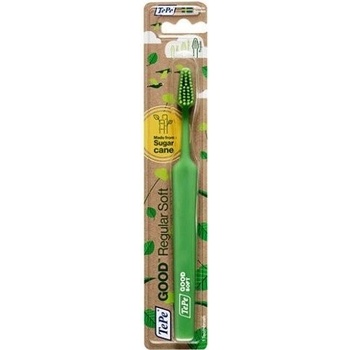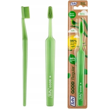 Environmentálne šetrná zubná kefka TePe GOOD Regular určená pre dospelých vyrobená z obnoviteľných zdrojov surovín. Rukoväť tvorí bioplast pochádzajúci z cukrovej trstiny a jemné vlákna sú z ricínového oleja. Rovnaká kvalita, väčšia šetrnosť k prírode.